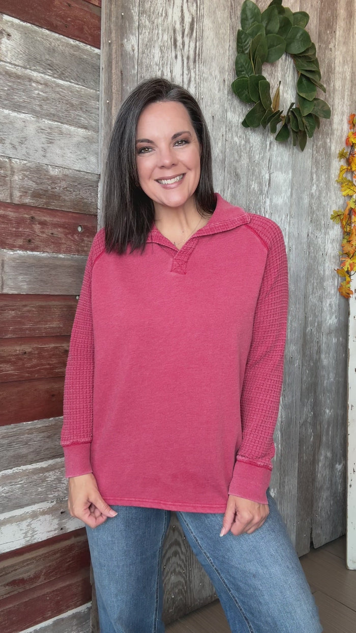 Waffle Knit Henley Top