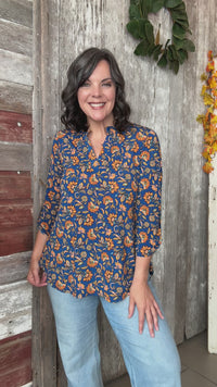Navy Sunset Floral Blouse