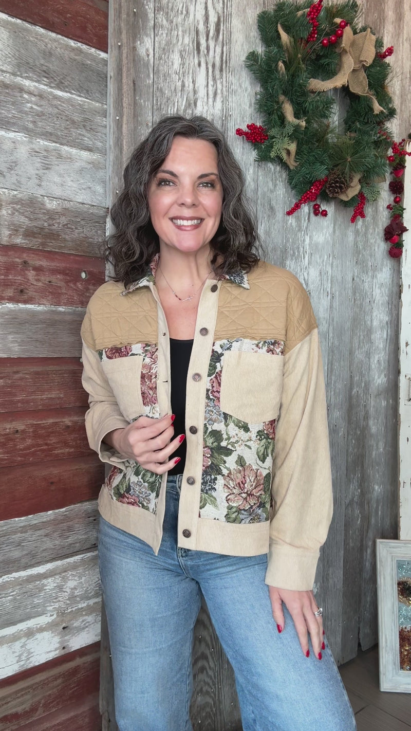 Elevate your everyday style with this captivating color block patchwork jacket that seamlessly blends texture and pattern. Crafted from a mix of rich corduroy and charming floral tapestry panels, each piece tells its own story. The quilted yoke adds subtle structure and warmth, while the relaxed silhouette ensures effortless comfort whether you're running errands or meeting friends. Perfect for layering through the seasons, this jacket transforms any outfit into something uniquely yours—a versatile statement piece that celebrates individuality and timeless design.