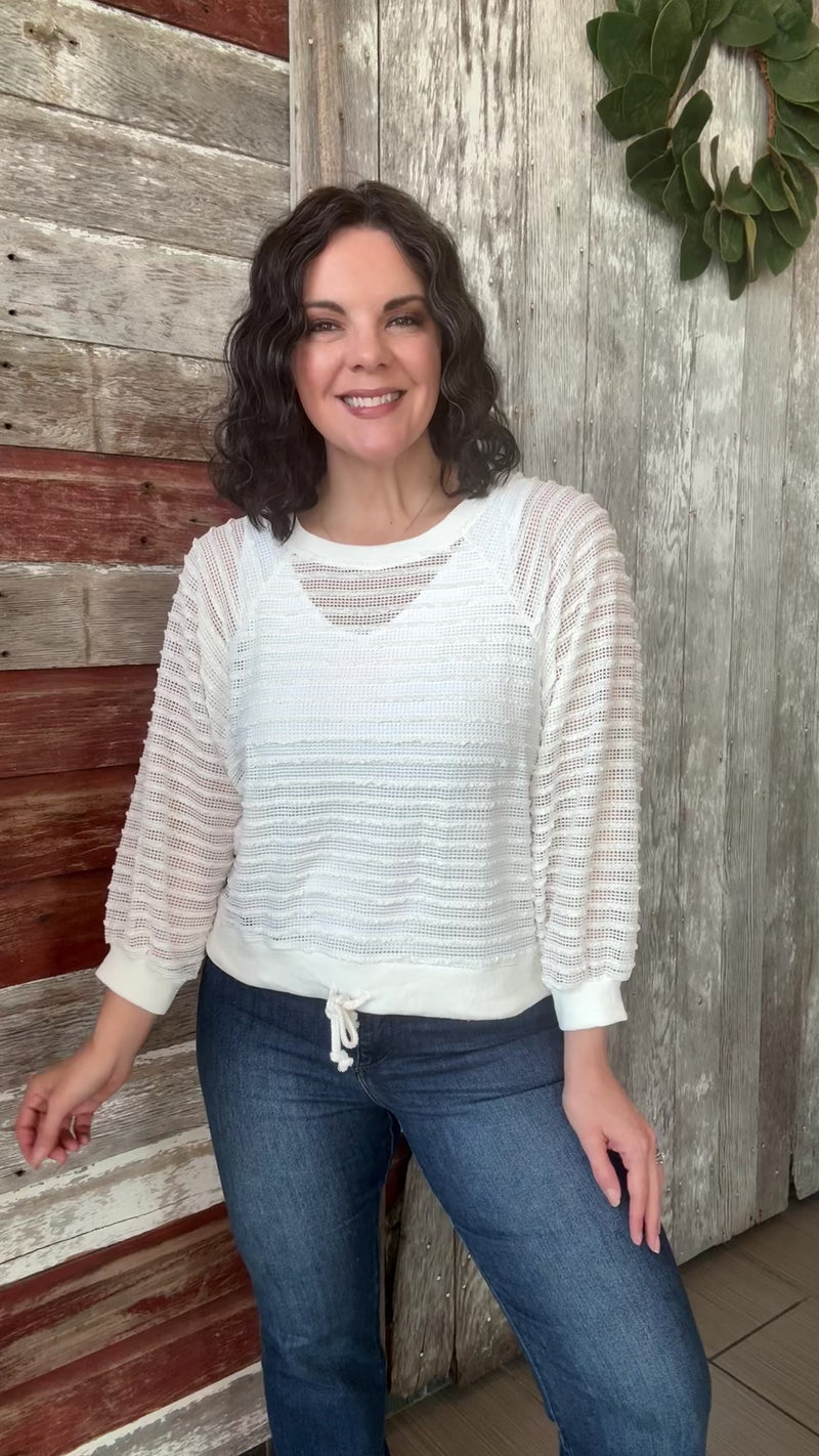 Effortlessly chic and undeniably comfortable, this White Drawstring Top features a relaxed raglan sleeve design that moves with you throughout your day. The loose knit construction offers breathable comfort while the round neckline provides a flattering, versatile look that pairs seamlessly with any wardrobe. Perfect for layering or wearing solo, this piece delivers casual elegance without sacrificing ease. A wardrobe essential that feels as good as it looks.