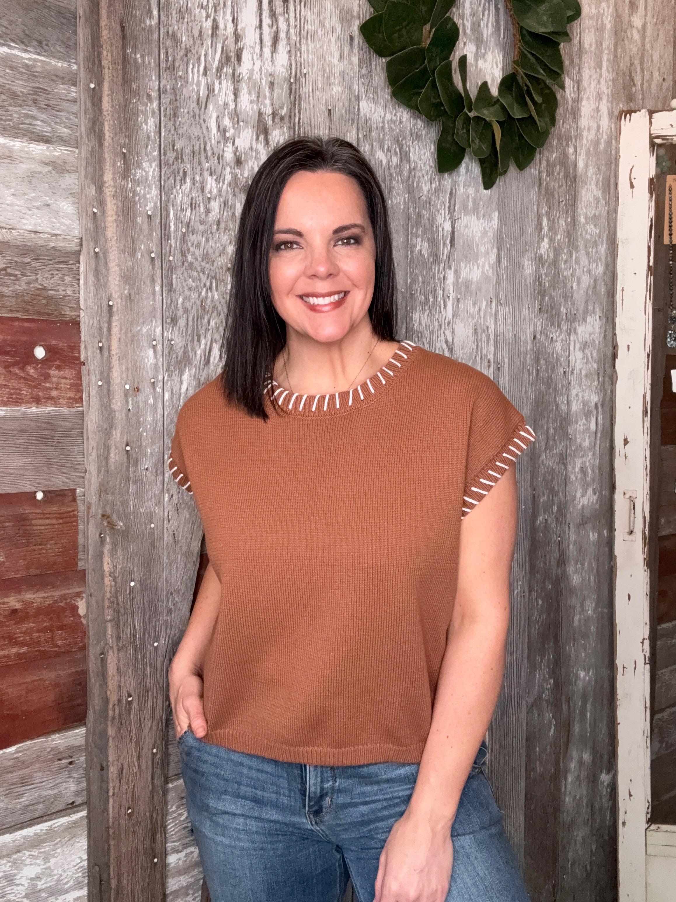 Elevate your layering game with this statement sweater vest, designed to make an impact. The oversized silhouette drapes effortlessly over your favorite tees and long-sleeves, while bold contrast stitching adds visual interest and undeniable style. Perfect for creating dimension in any outfit, this versatile piece transitions seamlessly from casual to polished. Whether you're building a cozy weekend look or adding texture to your work wardrobe, this vest delivers both comfort and sophistication.