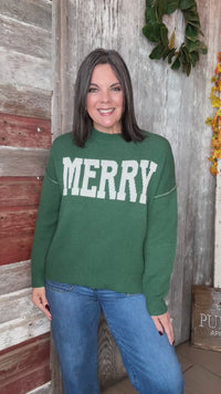 This oversized Christmas sweater features bold "MERRY" lettering in a vibrant contrast hue, adding a playful holiday touch to your look. Designed with a relaxed fit, drop shoulders, and a cozy knit texture, it offers both comfort and seasonal charm.