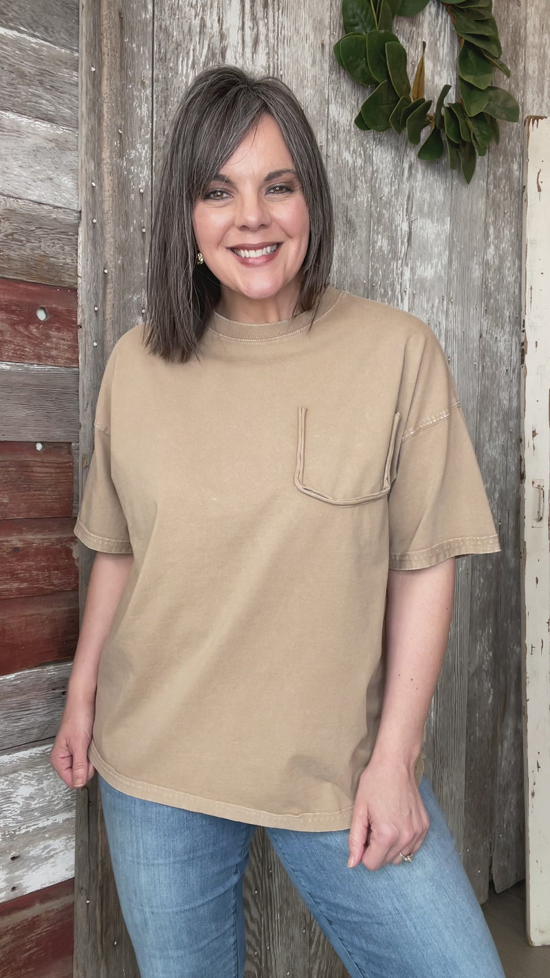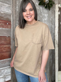 Embrace comfort and style with our Mocha Jersey Short Sleeve Top! Featuring a ribbed and round neckline, dropped shoulder sleeves, and a boxy, loose fit, this top is perfect for any occasion. The fake bust pocket detailing adds a touch of flair to elevate your look.